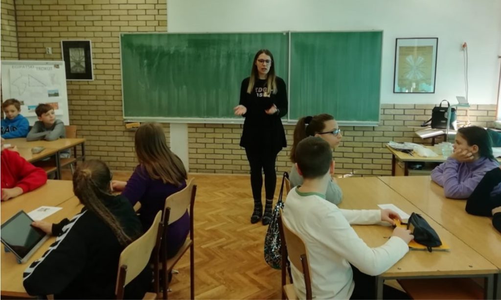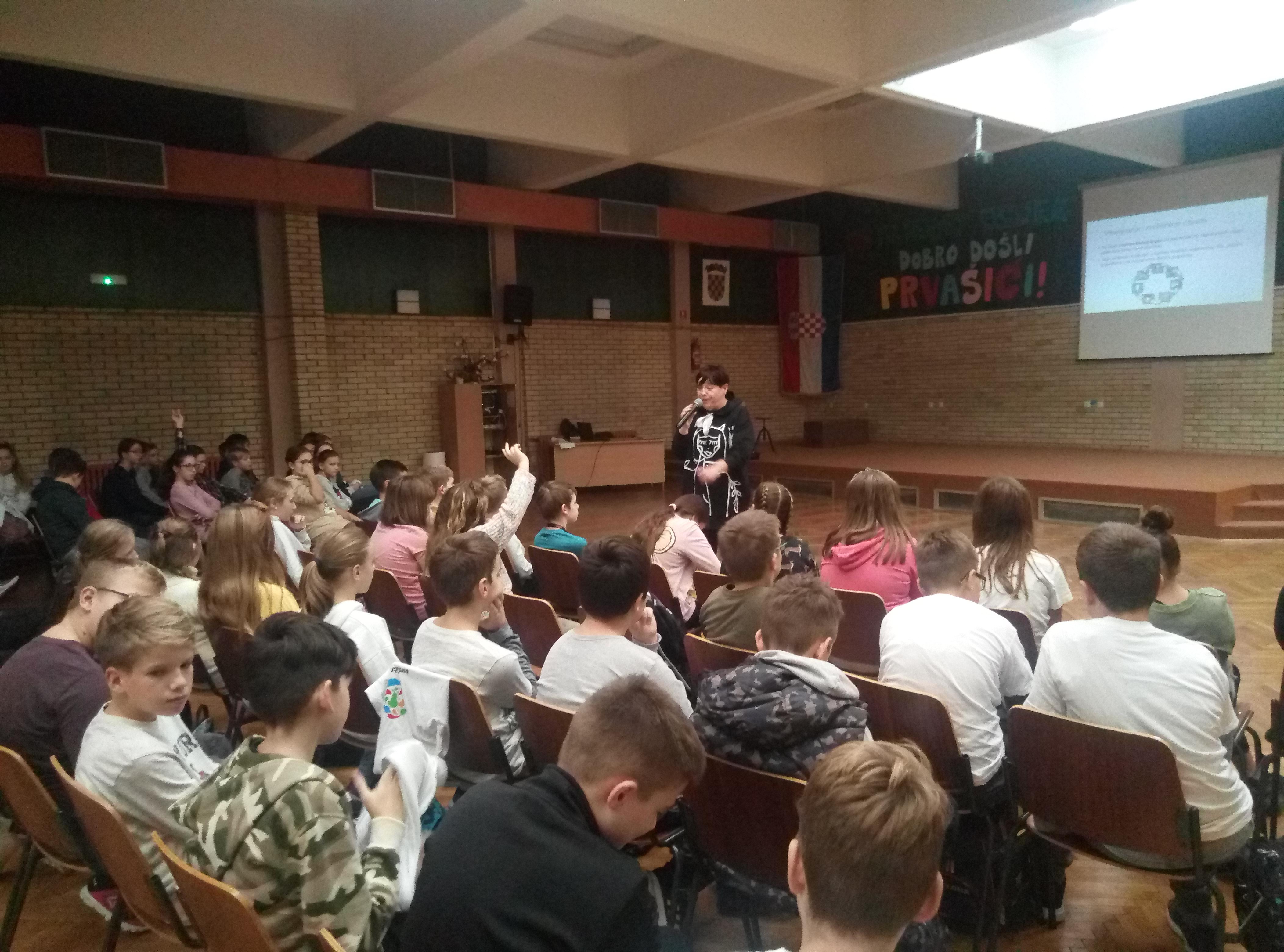 Tanja Popović Filipović iz Centra za edukaciju i informiranje potrošača održala je predavanje na temu “Održiva potrošnja” u obje partnerske škole. Predavanje je održano u sklopu Aktivnosti 3 – Osmišljavanje i provedba programa izobrazbe “Održivo gospodarenje otpadom”.