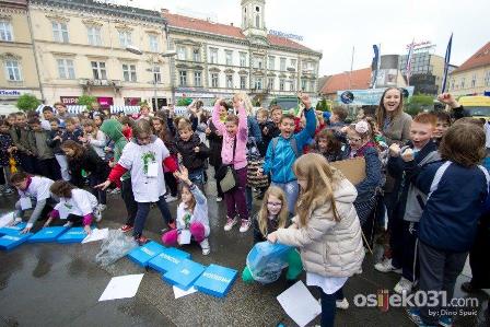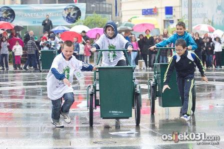 Unatoč jakoj kiši i ove godine je na Trgu Ante Starčevića obilježen Dan planeta Zemlje, a tema ovogodišnjeg obilježavanja je smanjenje ukupne količine otpada izdvajanjem, preradom i ponovnom upotrebom iskoristivog otpada. Učenici iz deset osnovnih škola sa područja grada Osijeka natjecali su se u popularnoj triciklijadi – utrci skupljanja otpada. Birala se najoriginalnija eko poruka, a održane su i zanimljive i edukativne radionice recikliranja starog papira.