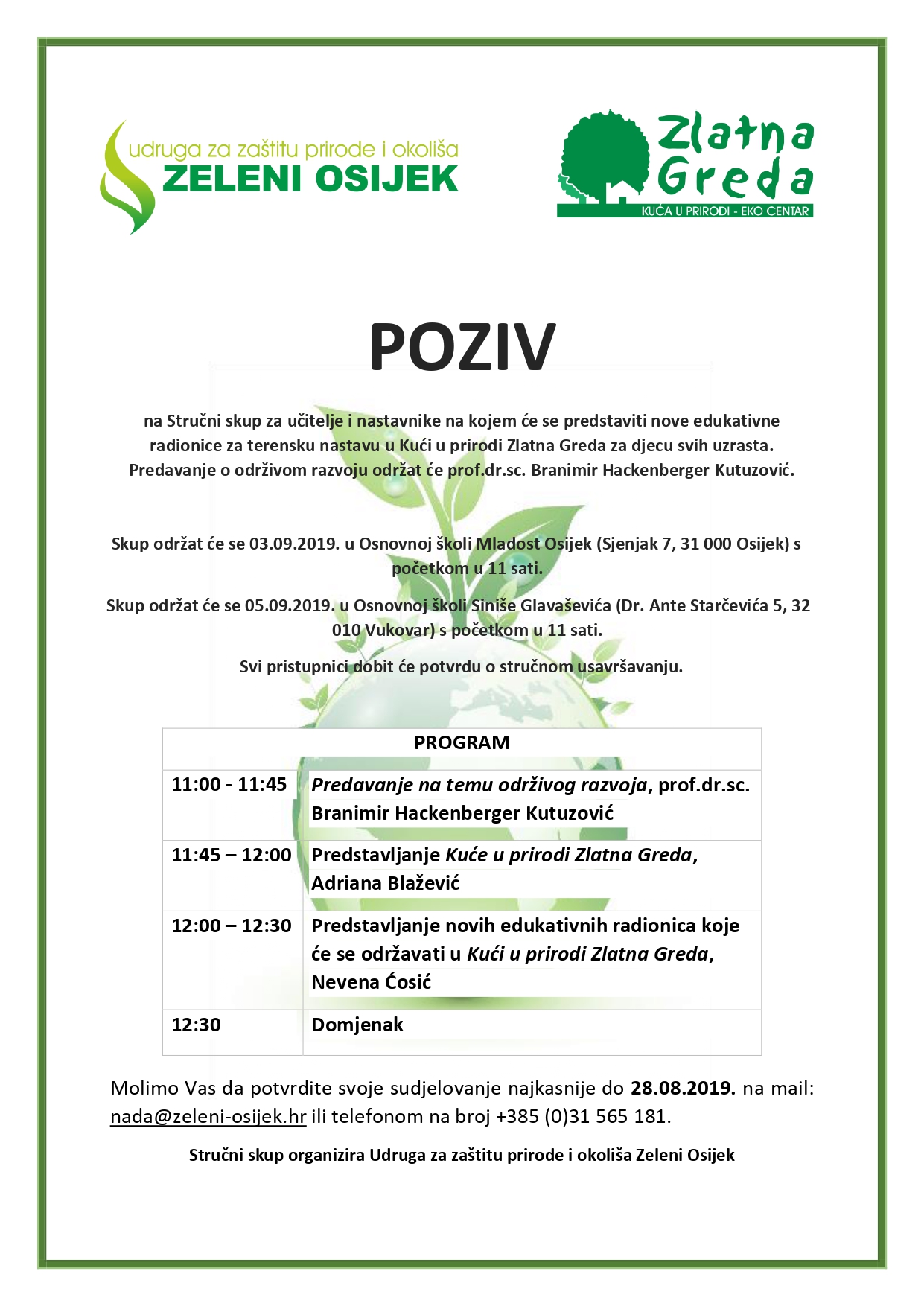 Pozivamo učitelje i nastavnike osnovnih škola da nam se pridruže na Stručnom skupu koji će se održati u Osijeku i Vukovaru. Predstavit ćemo Vam naše nove edukativne radionice za školsku godinu 2019./2020.